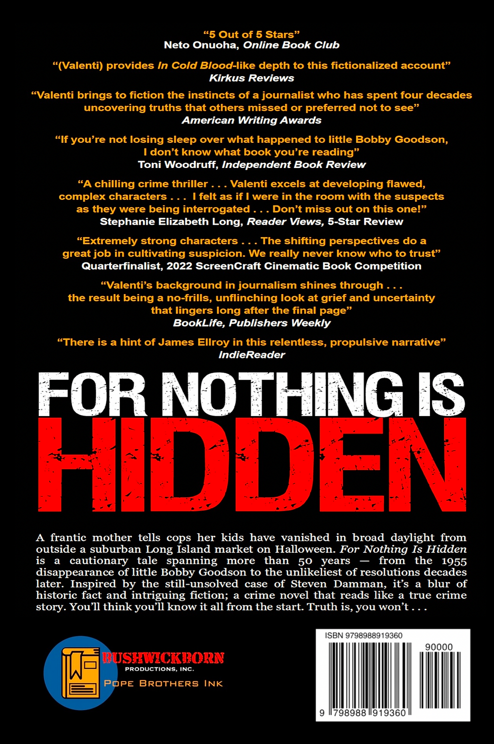Frustration. To be honest, I just got to the point where I was tired of seeing the unpublished manuscript on my desktop. I couldn’t find the right publisher — or, the right deal — and I’d gotten those reviews from Kirkus, Publishers Weekly and others, and the 70th anniversary of the real disappearance was looming. I had the book mocked up just to see how it might look. Finally, I just decided to go for broke — and release it under my own indie label. So, technically, it’s my second title under my own indie label. I purchased the ISBN numbers from Bowker. That means I’m an actual indie book publisher — and not a self-publisher. It’s a minor distinction, but one I’m proud of since I think the reviews have reaffirmed it’s a pretty good product. And, releasing it under my own indie imprint means I retain all rights — print, TV adaptation and movie — and that could loom large in the future, since I won’t have to share the majority of any of those profits with a standard publishing house [and, they take a LOT of that money] . . . So, I guess I figured it was worth the gamble. Believe in yourself, right?